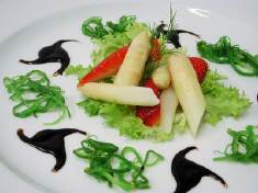 Gemischter Spargel mit Scampi und Senf Creme Dip