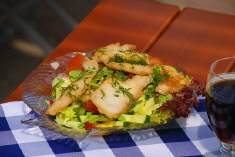 Hechtsalat mit Krabben - Wenn Sie den Hecht entgräten, vergessen Sie nicht die haarfeinen Gräten an der Bauchseite. Zutaten: 1 Hecht (800 g) 1 Pck große, tiefgekühlte Krabben (150 g) 200 g Erbsen ...
